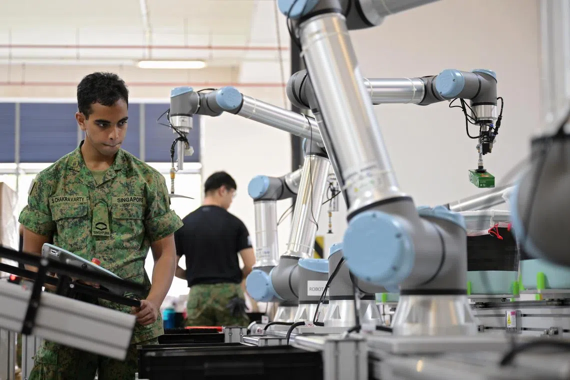 Lance Corporal Shourjo Chakravarty, one of the NSFs operating the automated packing line, said he and his team spent about a week learning how to program the robots, to ensure they run smoothly.