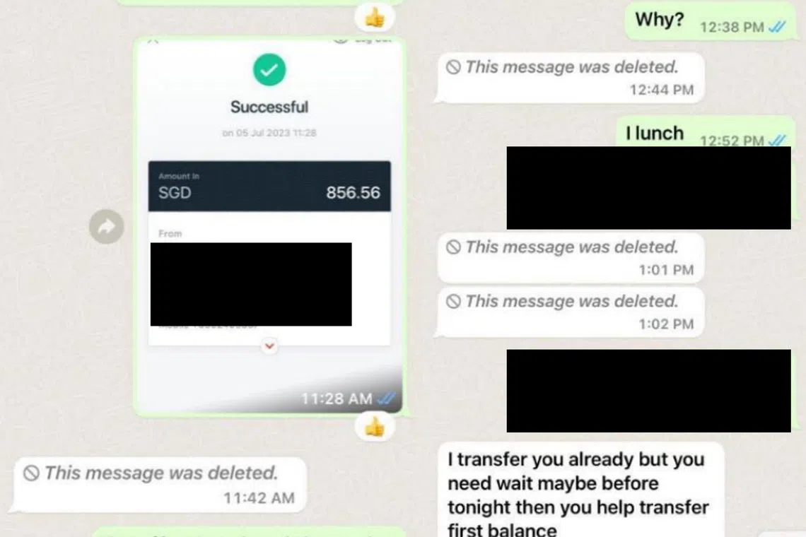 Those targeted first receive text messages or phone or WhatsApp calls from unknown numbers – with or without the “+65” prefix.