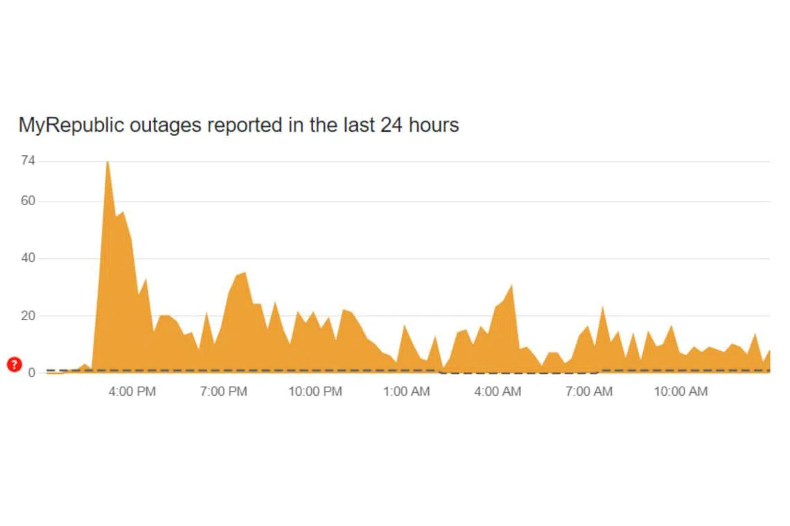 According to outage tracking website Downdetector, reports of MyRepublic outages had been made since 2.26pm on Sept 30. There was a spike in the number of reported outages at around 3.11pm on Sept 30, with 74 reports made.