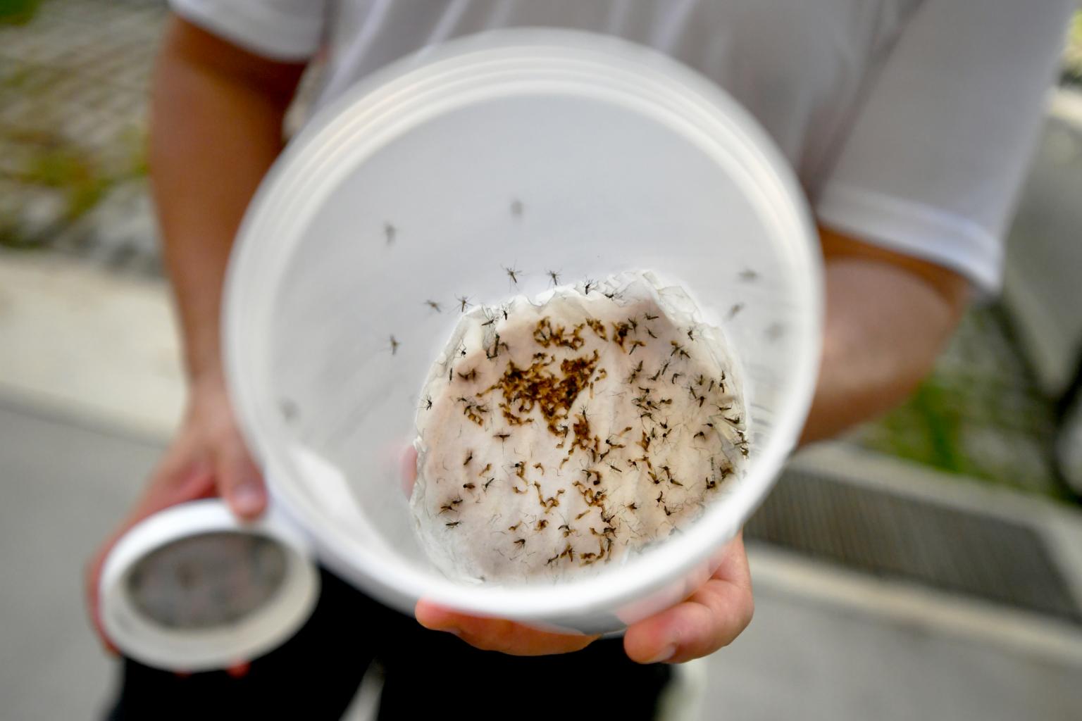 These specially bred Aedes aegypti mosquitoes are all male and carry the Wolbachia bacterium. After mating with their female counterparts, the resulting eggs do not hatch, thus suppressing their population.