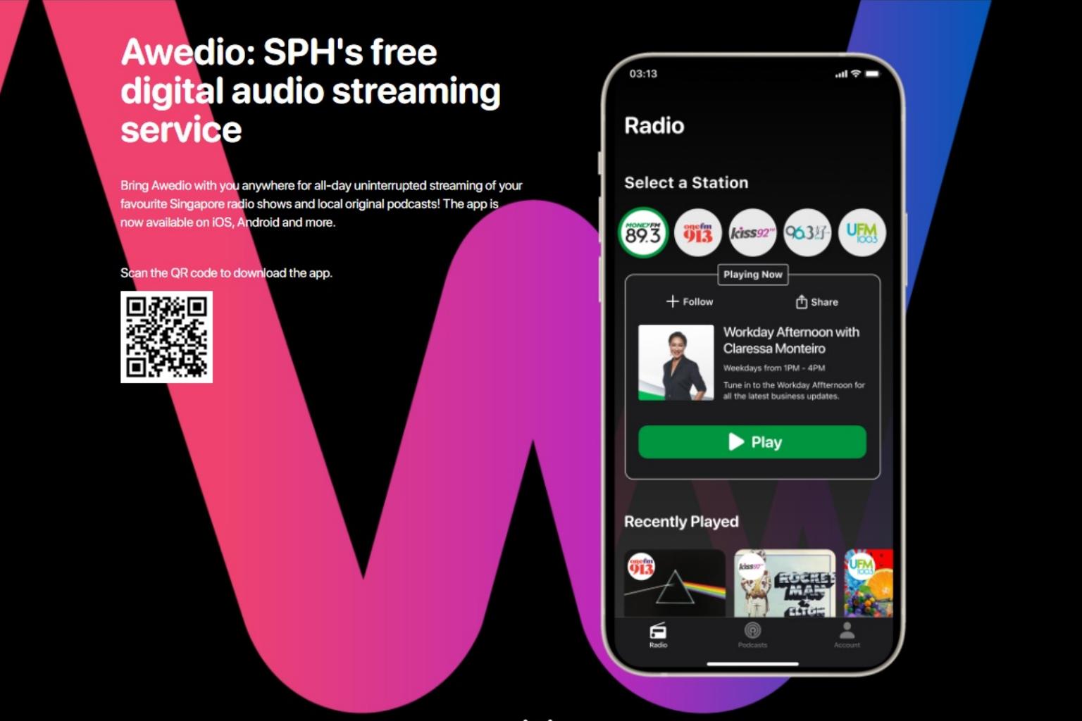 It will allow users live access to SPH's radio stations - Money FM 89.3, ONE FM 91.3, Kiss92 FM, 96.3 Hao FM and UFM 100.3 - and enable them to catch up on radio segments they may have missed through each station's podcasts-on-demand section.