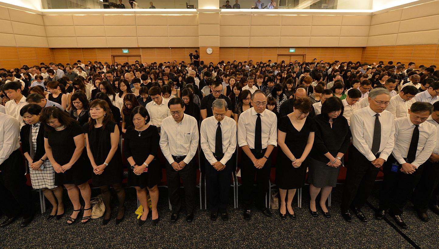 The one-hour service at the SPH News Centre auditorium started with the showing of a video by SPH Razor on the life of Mr Lee and ended with staff singing the National Anthem.