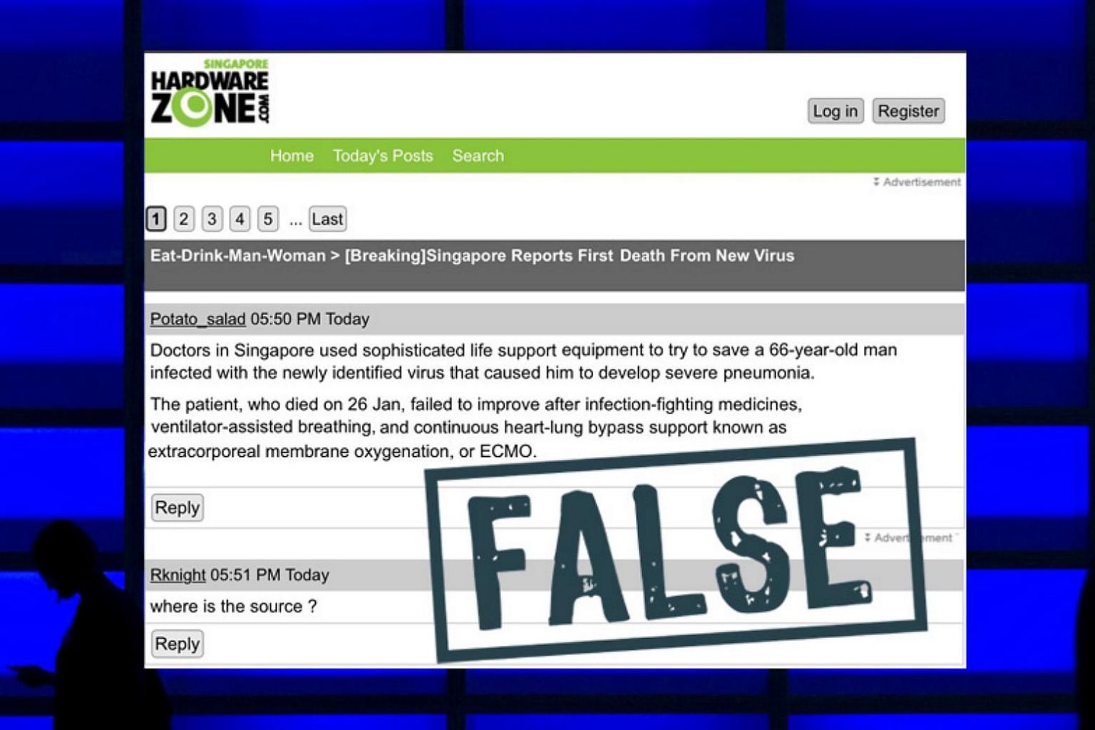 "A false statement was made in a HardwareZone forum post, claiming that a man has died from the Wuhan coronavirus infection in Singapore. HardwareZone is required to carry the Correction Notice to all end-users in Singapore who use HardwareZone.com," said the Pofma Office said in a statement early on Monday (Jan 27).