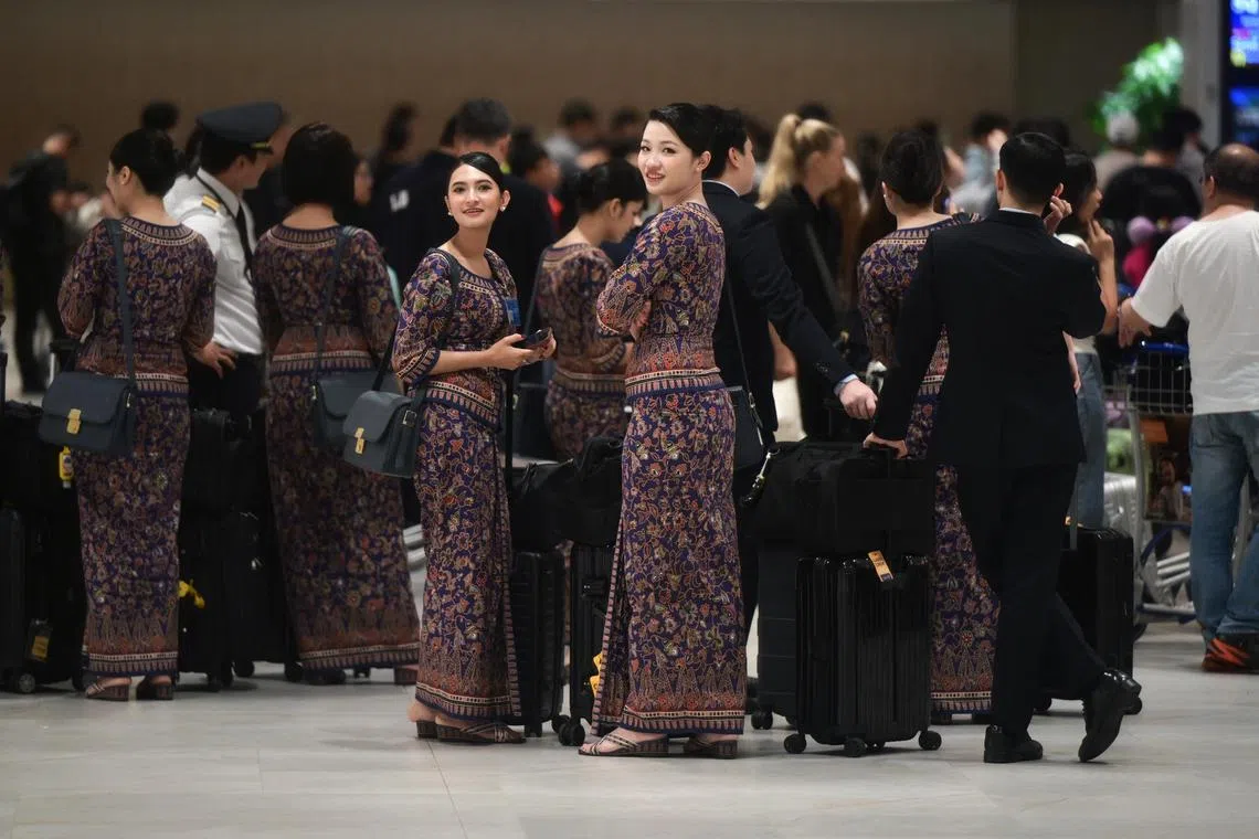 Singapore Airlines air stewardesses dressed in the carrier’s signature kebaya at Changi Airport Terminal 2 on Dec 4.