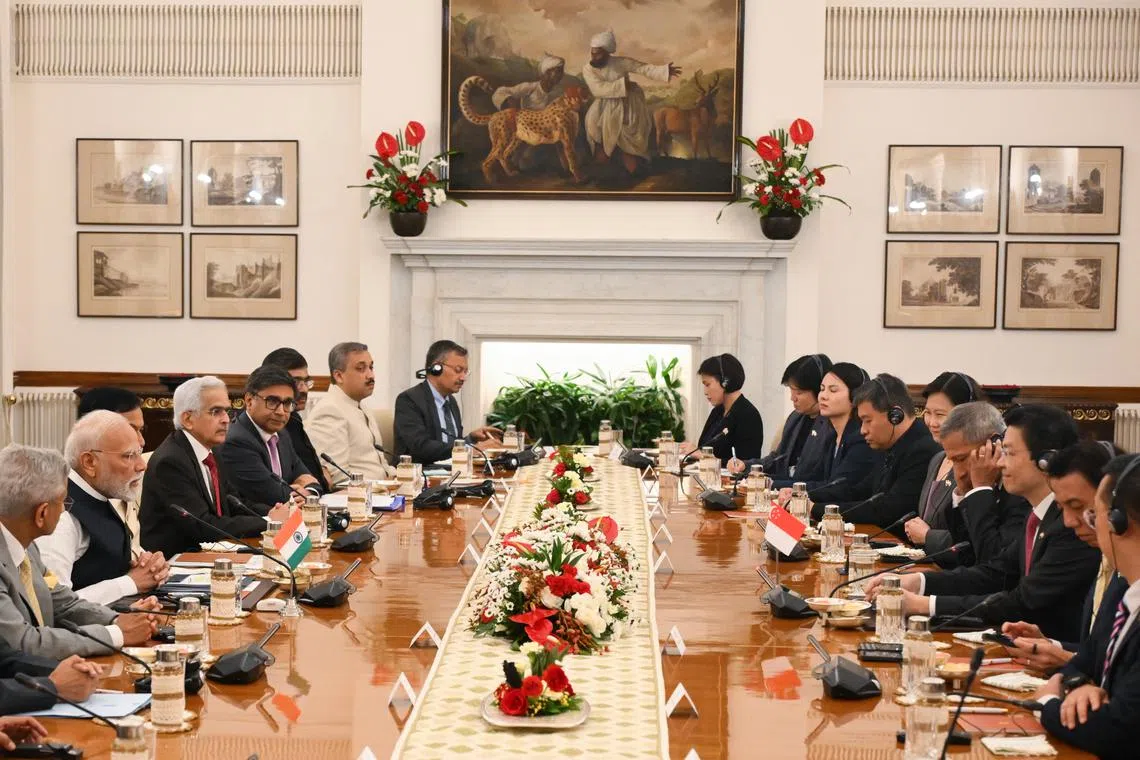 Prime Minister Lawrence Wong and his Indian counterpart Narendra Modi at Hyderabad House in New Delhi on Sept 4.