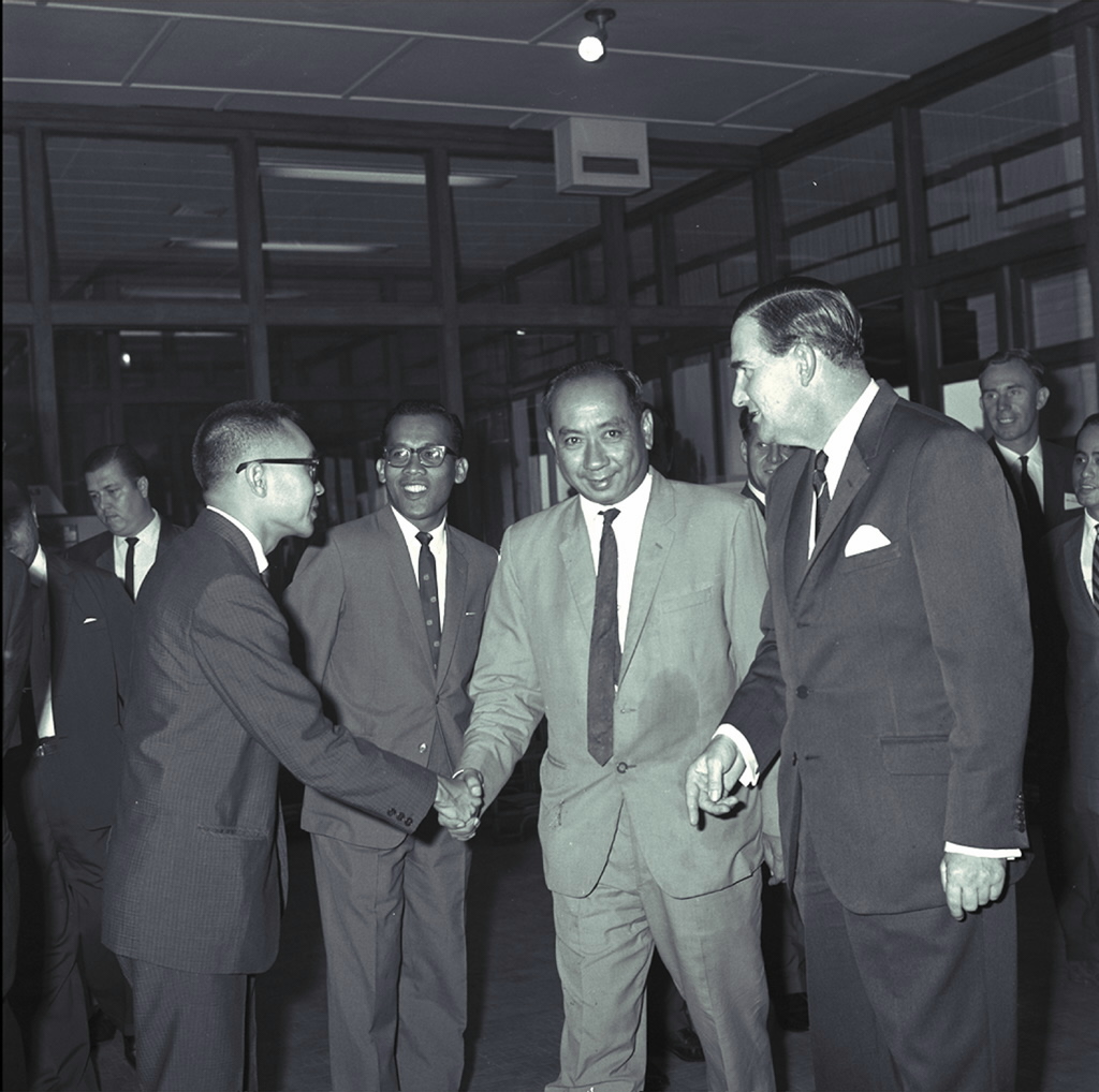 Singapore Finance Minister Goh Keng Swee (second from right) accompanying Malaysian Minister for Commerce and Industry Lim Swee Aun for a tour of the Ford Factory in Bukit Timah in 1964.