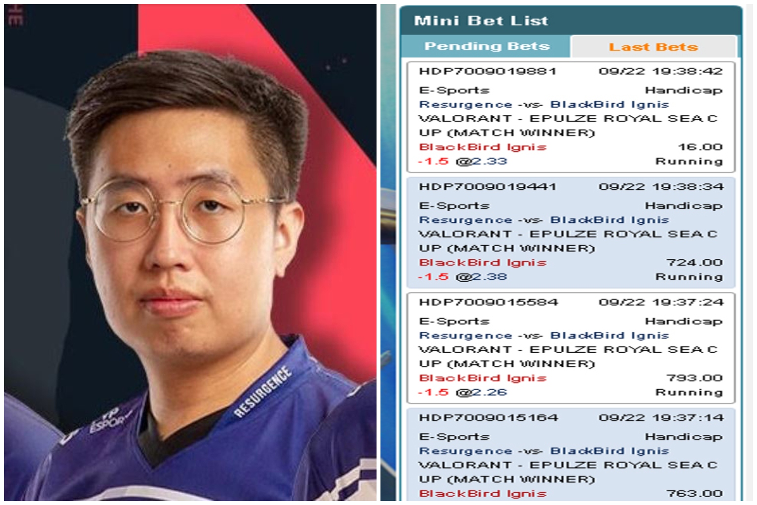 Malcolm Chung purportedly placed $3,000 in bets, wagering that his team would lose 0-2 to BlackBird Ignis.