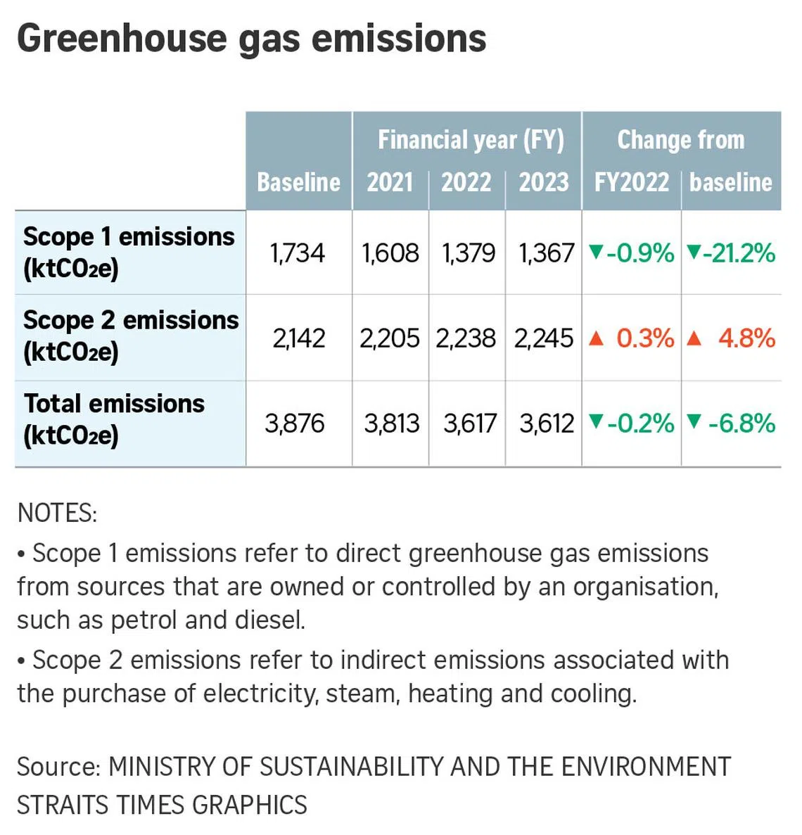 The emissions from 2023, amounting to 3.6 million tonnes, were outlined in a report released by the Ministry of Sustainability and the Environment (MSE) on Nov 18, in the second GreenGov report.