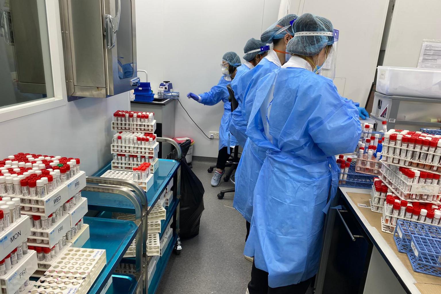 Parkway Laboratories staff processing Covid-19 swabs on May 21, 2021.