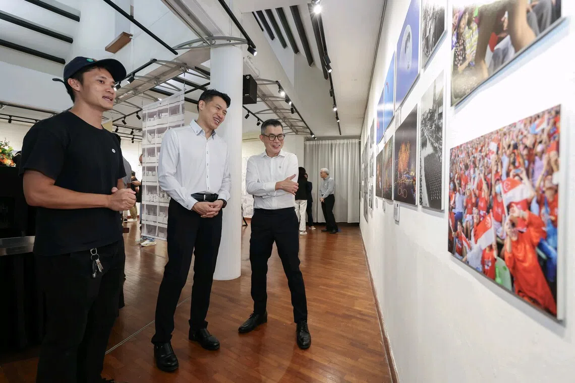 (From left) ST photojournalist Mark Cheong sharing insights about some of his photos at the exhibition with Acting Minister for Culture, Community and Youth David Neo and ST editor Jaime Ho.
