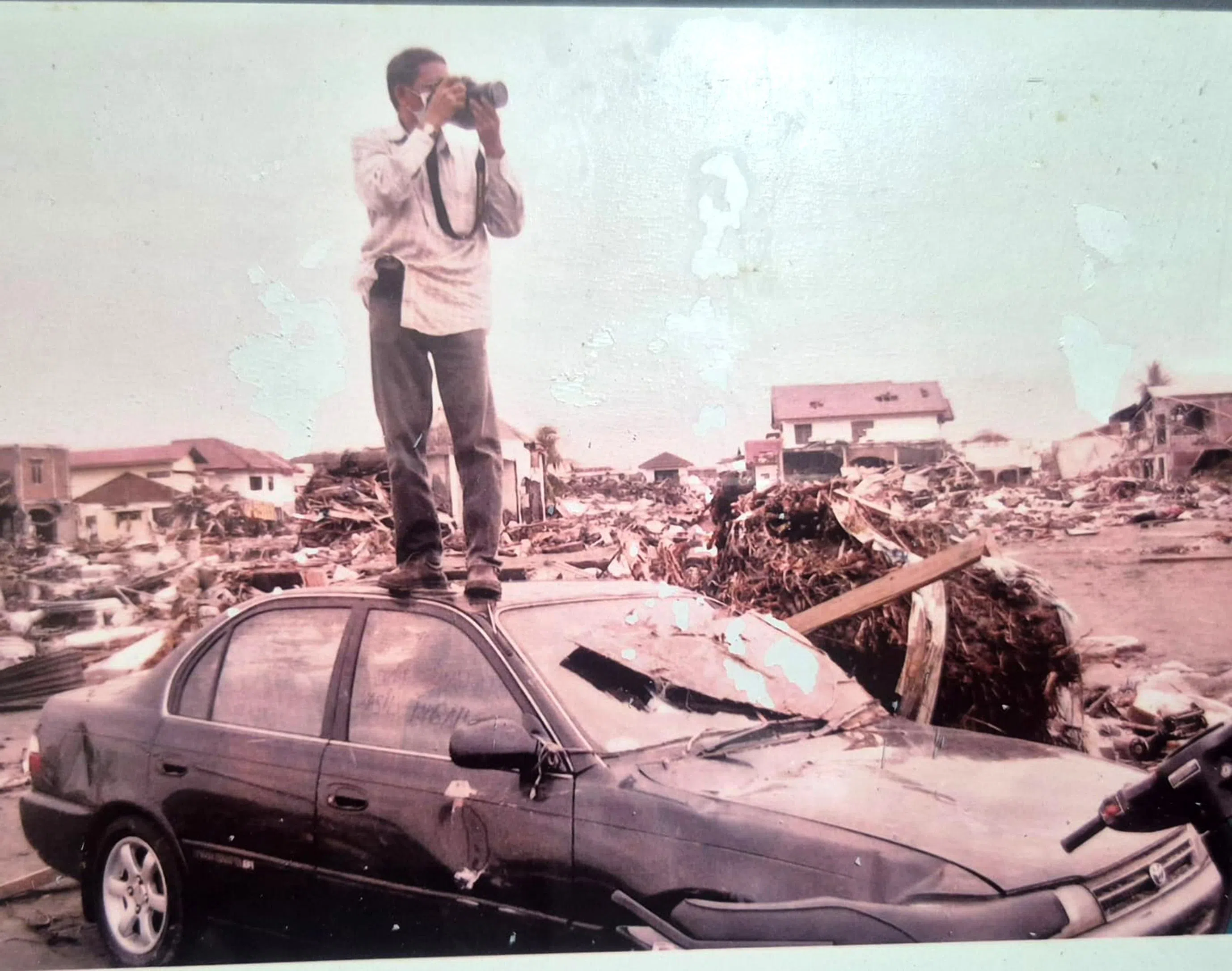 Former ST photographer Aziz Hussin taking photos of the aftermath of the 2004 Indian Ocean earthquake and tsunami in Aceh.