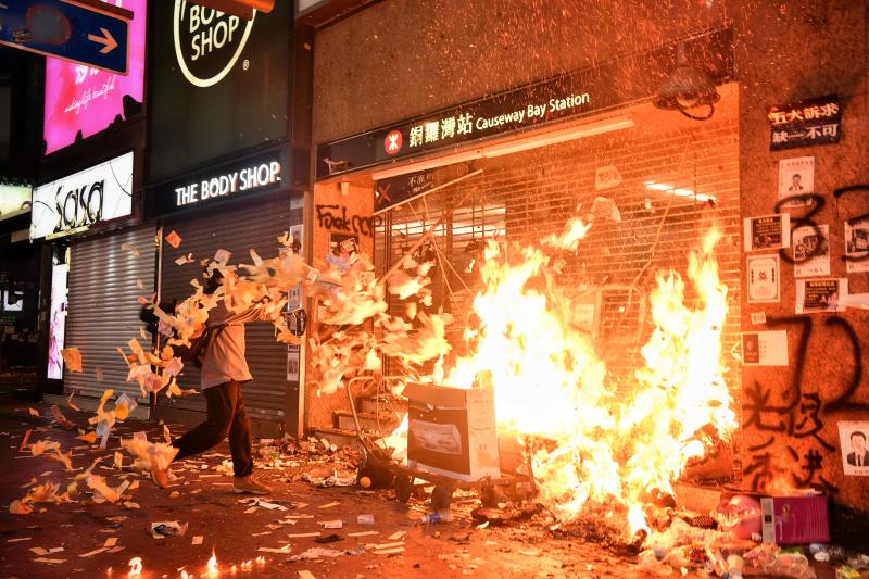 He said that protesters trampled on Chinese flags and started fires in front of shops and in streets.