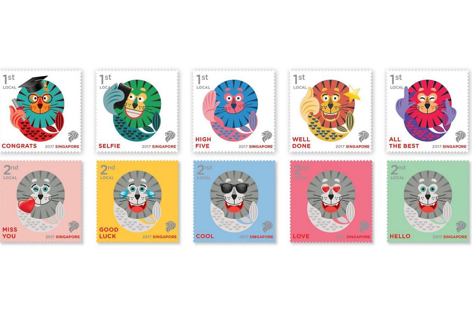 The stamps show the national icon conveying - emoji-style - 10 different emotions and expressions, SingPost said in a news release.