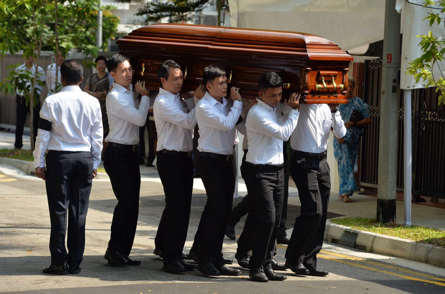 The casket of former president S R Nathan being carried into his home on Aug 23, 2016.