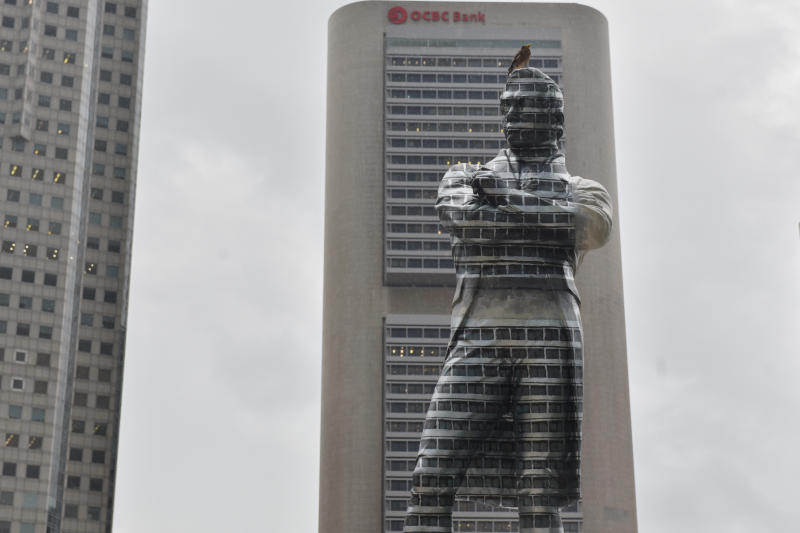 Statue of Sir Stamford Raffles in Boat Quay 'disappears' for Singapore Bicentennial