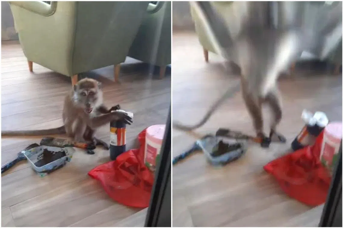 Photos and videos sent by the spokesman show the monkey playing with and biting what appear to be art supplies. The monkey can be seen lunging towards the person filming the video as it cuts out.