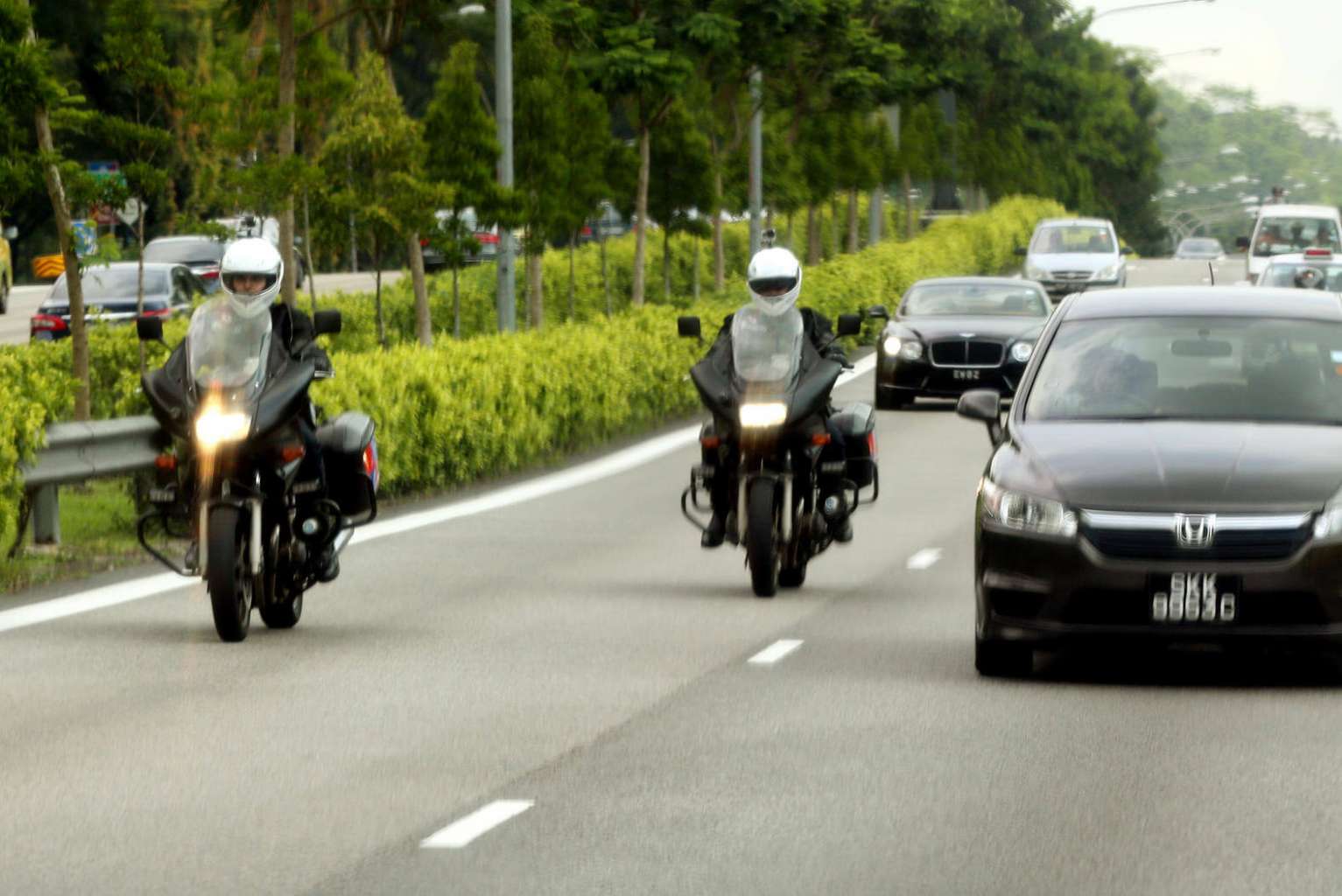 The two-man team from the Traffic Police's Special Operations Team on the new unmarked motorbikes on the roads yesterday along the Pan-Island Expressway.