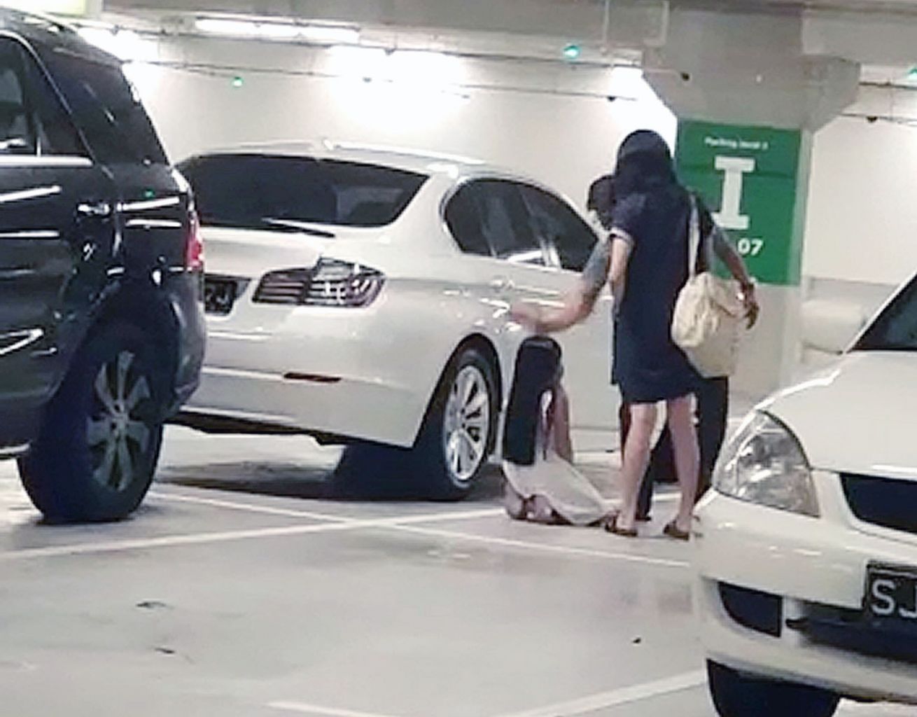 In the 18-second clip taken on Nov 5, the girl, who looks to be of primary-school age, is seen kneeling next to a white car at the Ikea Tampines carpark.