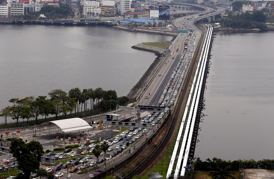 Vehicles travelling on the Causeway between Singapore and Johor Baru.