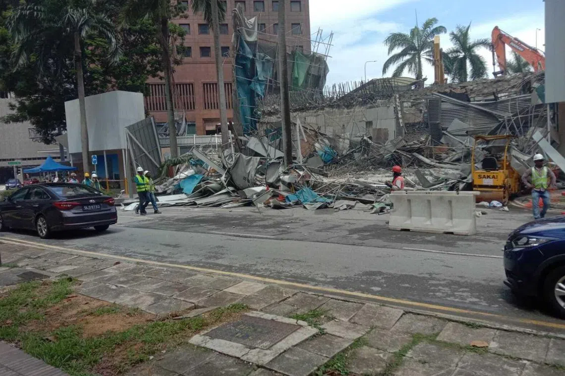 Debris from the collapse had crashed through the construction hoarding onto Bernam Street, with cordons placed near the debris.