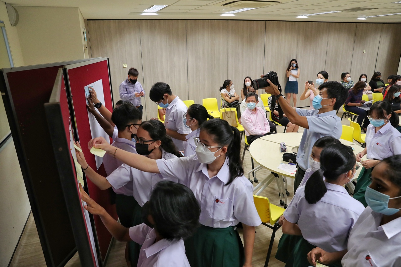 Education Minister Chan Chun Sing, who visited the school on Thursday, also took part in the dialogue, which was held to mark Racial Harmony Day and involved about 1,000 students and 30 teachers.