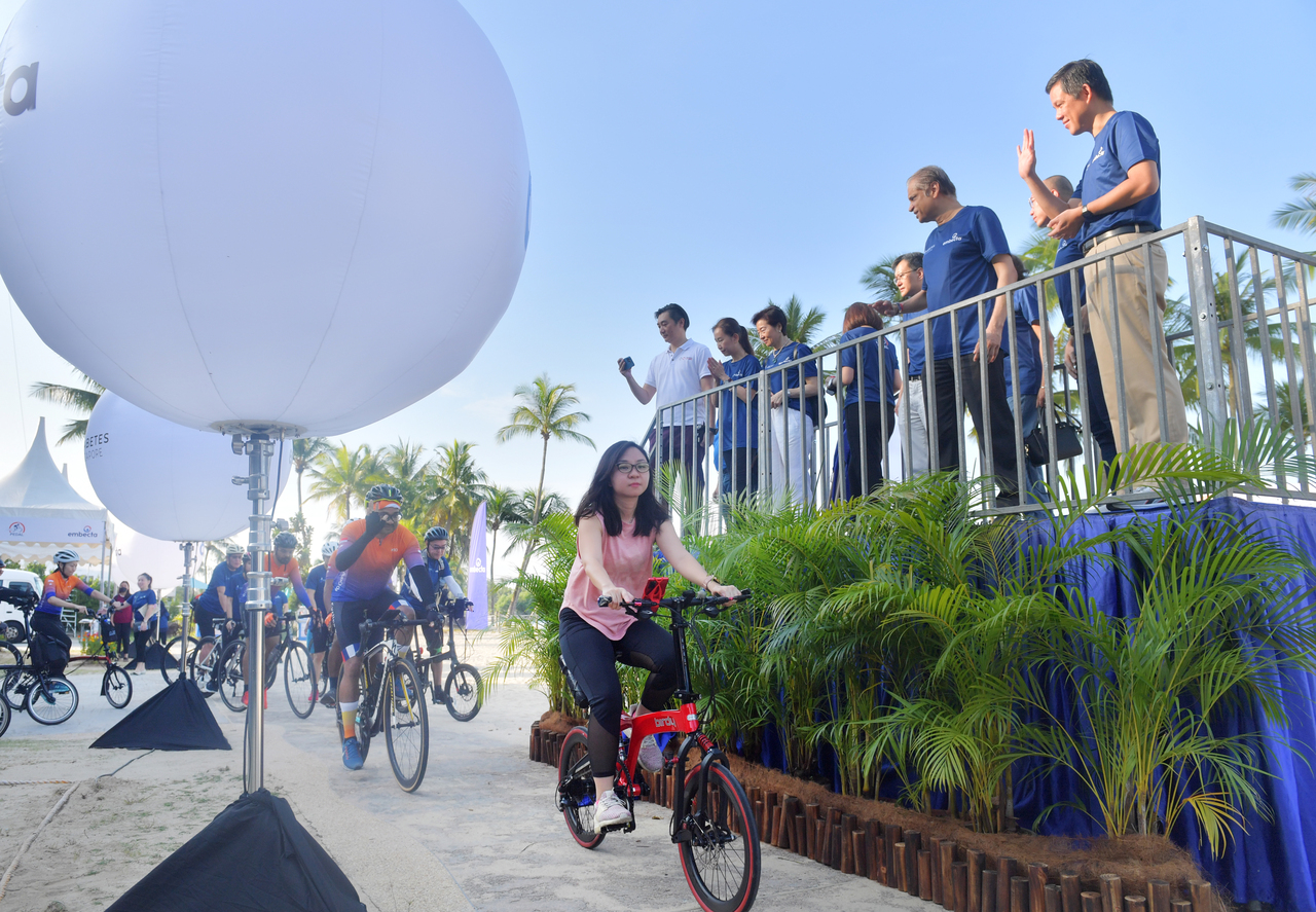 Around 300 cyclists, including para-cyclists, were flagged off by Mr Chan from the Sapphire Pavilion along Siloso Beach.