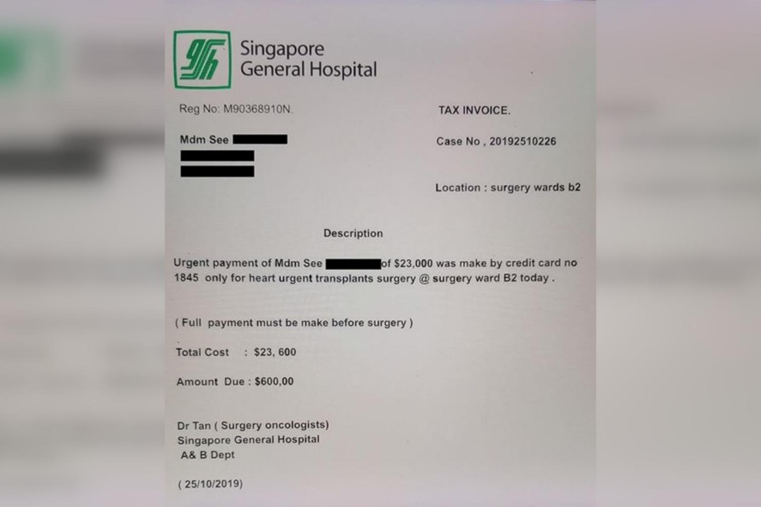 Surgery invoice for '$600,00' bearing SGH logo is a scam, says hospital