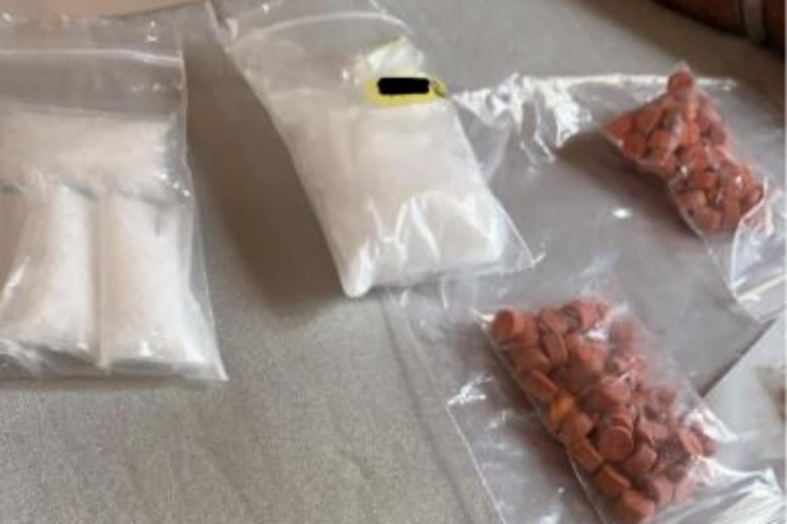 Drugs worth $32,000 were seized in the operation, including 274g of new psychoactive substances, 91g of Ice, 87g of heroin, 33g of ketamine, 381 Ecstasy tablets and 98 Erimin-5 tablets.