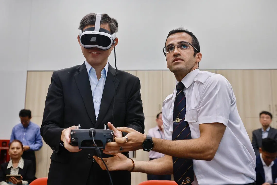 Education Minister Chan Chun Sing, who was guest of honour at Tuesday’s launch, tried his hand at a virtual reality (VR) demonstration of flying an unmanned aircraft, or drone.