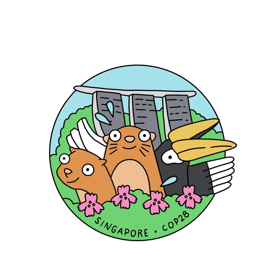 These were encapsulated in an enamel pin, which she designed for the Singapore pavilion at the COP28 conference, featuring these animals against a backdrop of Singapore’s Central Business District.