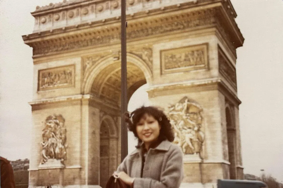 Mr Hsu Hu-chin’s mother in front of the Arc de Triomphe in Paris.