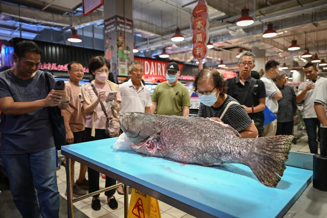 It’s not just the decorations which were drawing the interest of the customers in the run-up to CNY. On Jan 28, a 30kg giant grouper was filleted in front of eager shoppers.