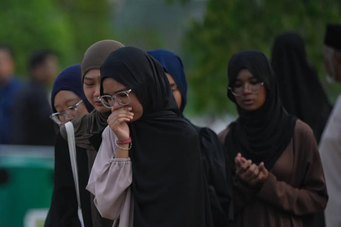 Family, relatives and friends at the funeral of Temasek Junior College student Afifah Munirah Muhammad Azril at a multi-purpose hall in Pasir Ris.
