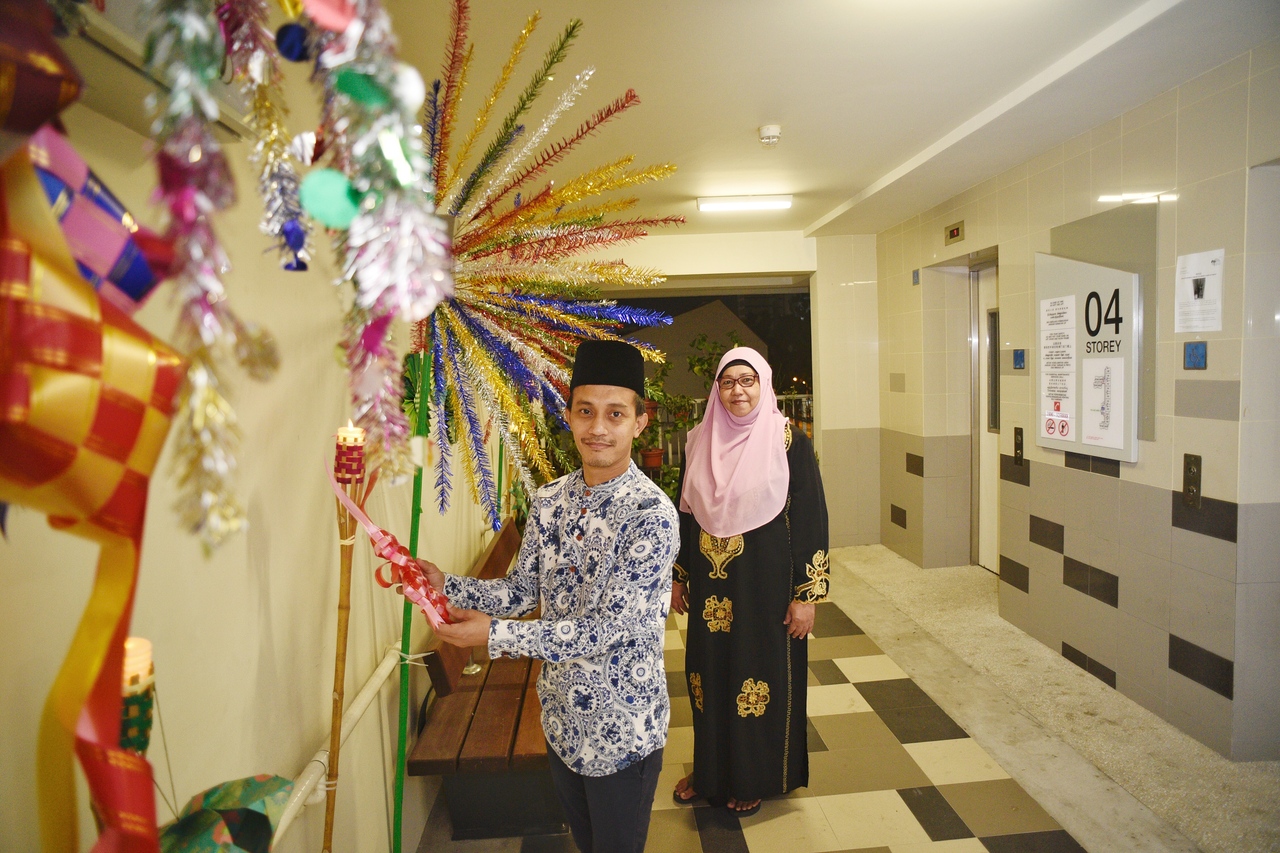 In Mr Azman's absence, their neighbour, Madam Rashida A. Rahman, 63, helped Mr Abdullah put up the decorations around the corridor.