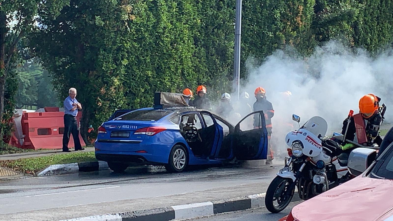 SINGAPORE - A ComfortDelGro cab caught fire in Sin Ming on Friday morning (Dec 6).