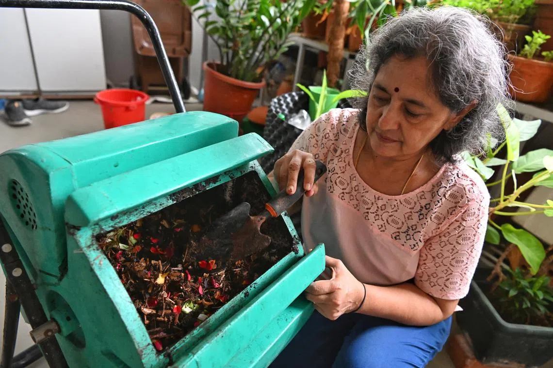 Segregating rubbish for composting or recycling is also important to Mrs Padmarani Srivatsan.