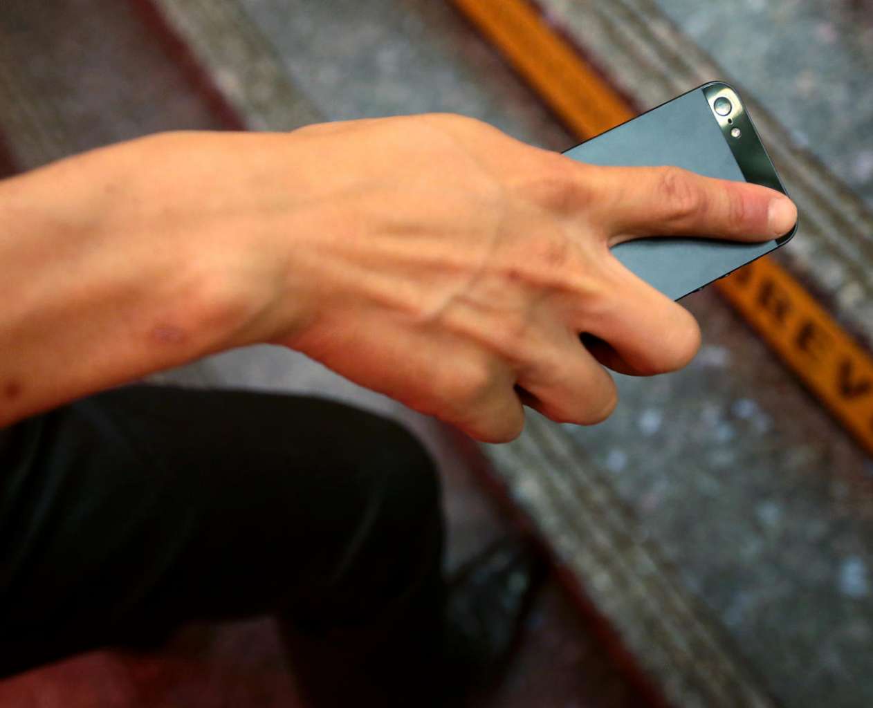A person demonstrating how upskirt videos or photos were taken.