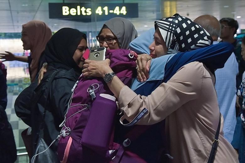 At 3.10pm, the students, tired but relieved, emerged to the teary embrace of nearly 70 relatives and friends eagerly awaiting their return at Terminal 3.