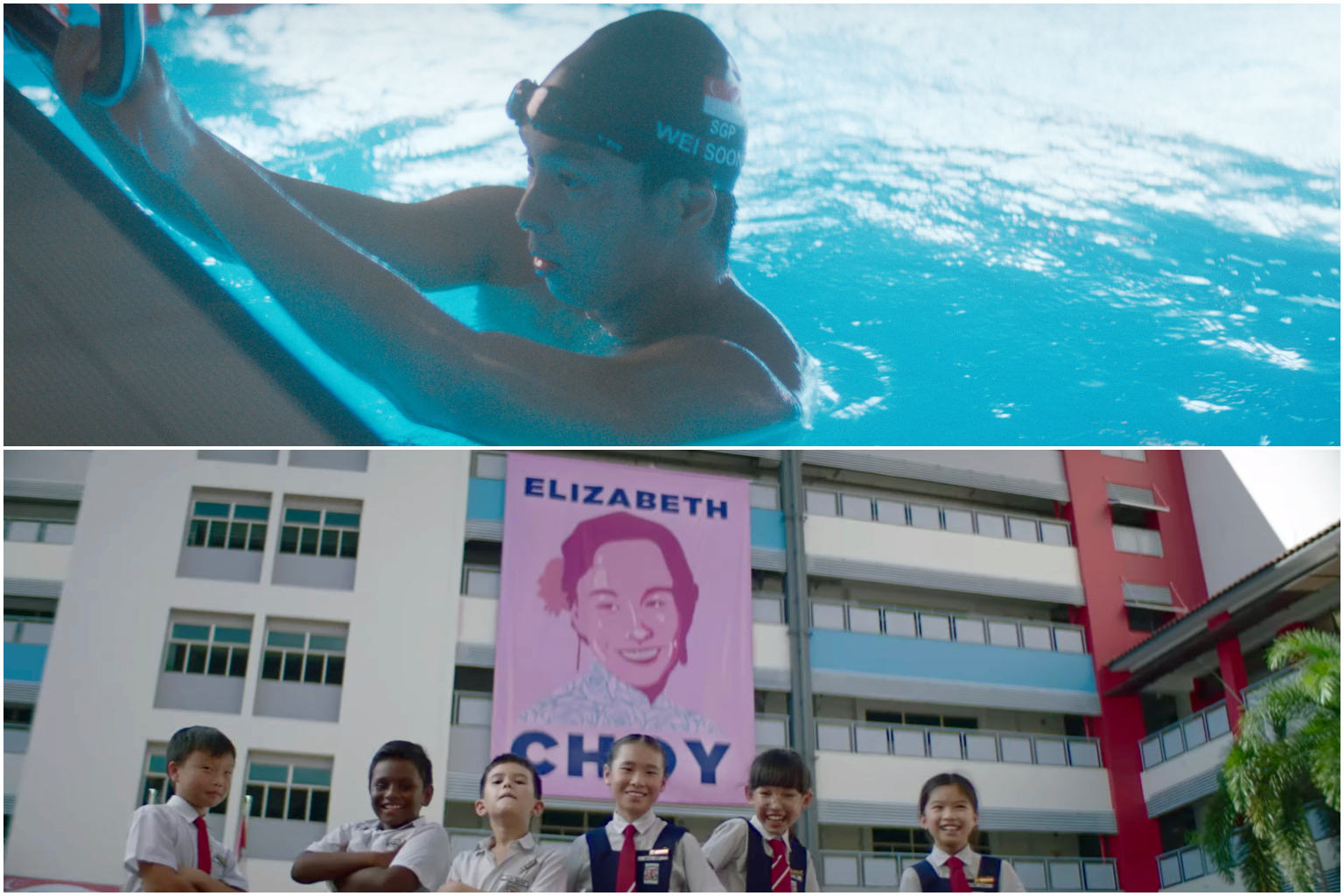 Singtel's National Day video features national para-swimmer Toh Wei Soong (top) among others, while StarHub's video champions wartime heroine Elizabeth Choy.