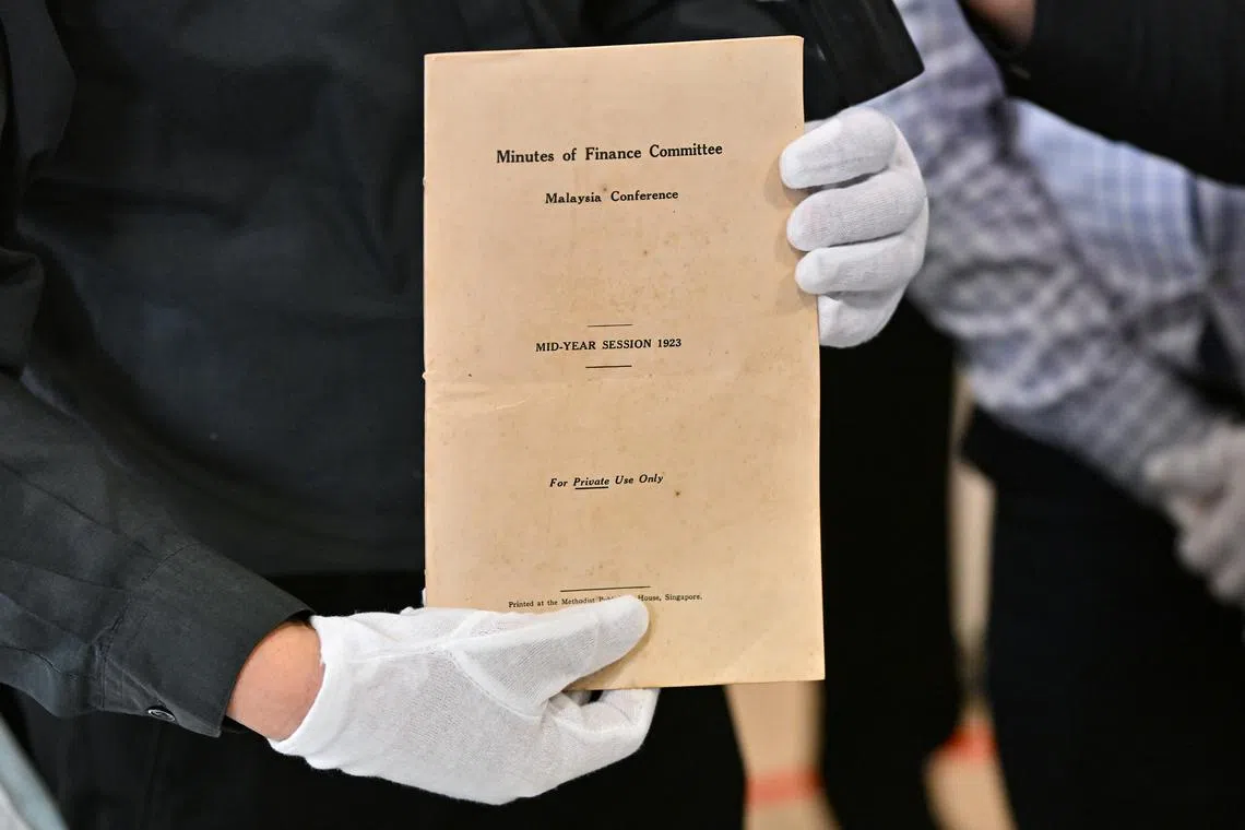 The capsule also contained minutes of a 1923 meeting by the Finance Committee of the Malaysia Conference of the Methodist Episcopal Church, which bore the names of Anglo-Chinese School and Methodist Girls’ School, reflecting the ties these institutions have to the Methodist movement in Singapore.
