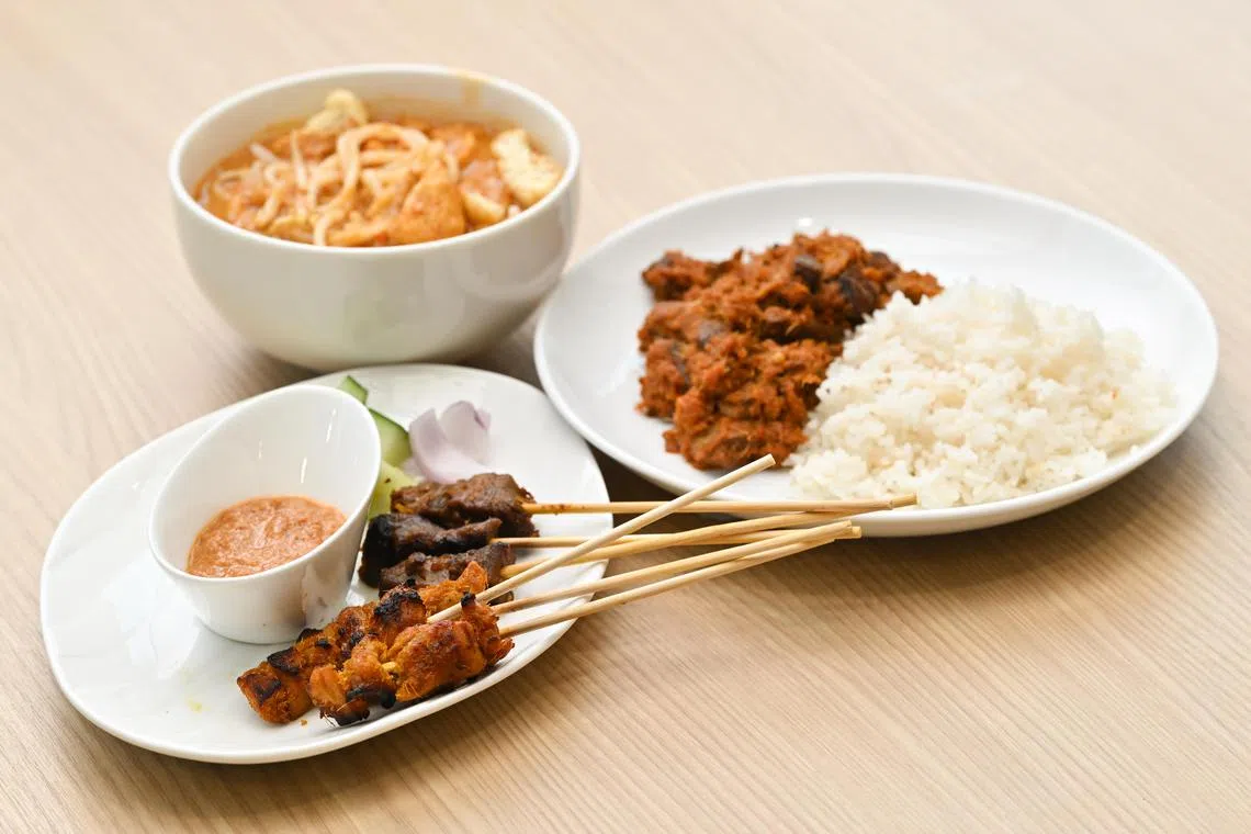 The laksa, beef rendang, and chicken and beef satay dishes which were given an all-plant makeover by six Temasek Polytechnic students.
