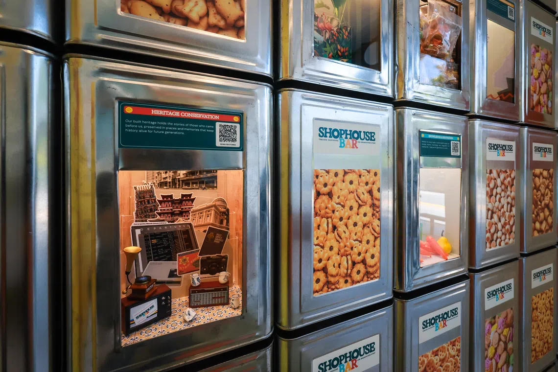 Visitors can help themselves to some of Singapore’s beloved traditional snacks at the Shophouse B.A.R. (Books, Artefacts, Reflections).