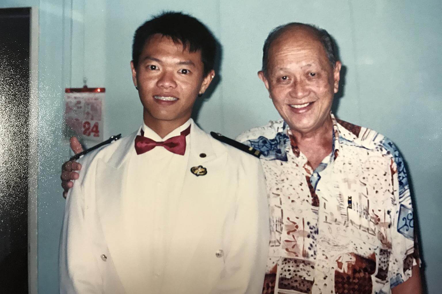 Mr Koh, who graduated from Officer Cadet School during his National Service, with grandfather Tan Koh Lim, now 80.