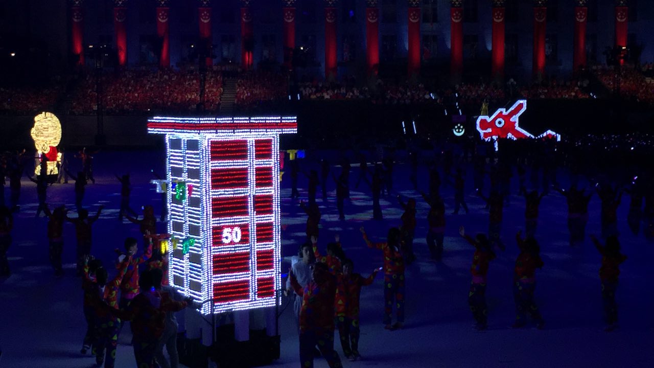 Some 500 primary school pupils lit up the Padang with their LED costumes during the National Day Parade on Aug 9, 2015.