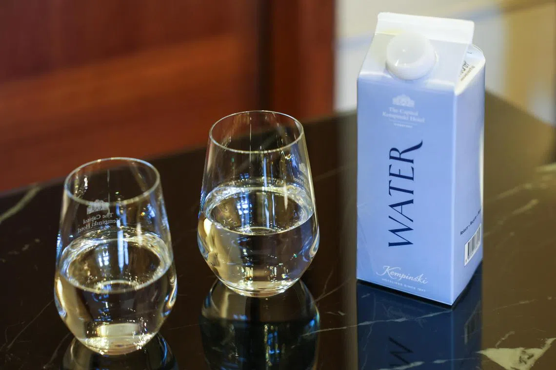 ST20241123_202447000919: Gin Tay/ stlunchdemis / Sumiko Tan / Two glasses of water ordered during an interview with Sumiko Tan, Executive Editor of The Straits Times; and British computer scientist/entrepreneur Demis Hassabis, the CEO of Google's Deepmind Technologies; who won the 2024 Nobel Chemistry Prize. (Photographed at Capitol Kempinski Hotel on Nov 23, 2024). ///Interview with British computer scientist/entrepreneur Demis Hassabis, the CEO of Google's Deepmind Technologies, who won the 2024 Nobel Chemistry Prize. His mother is Singaporean-Chinese. Deepmind basically does AI. Demis is in town for the World Chess Championship because he was a chess prodigy/Google also a sponsor of the event. Deepmind created AlphaGo, where a machine beat a Go master.