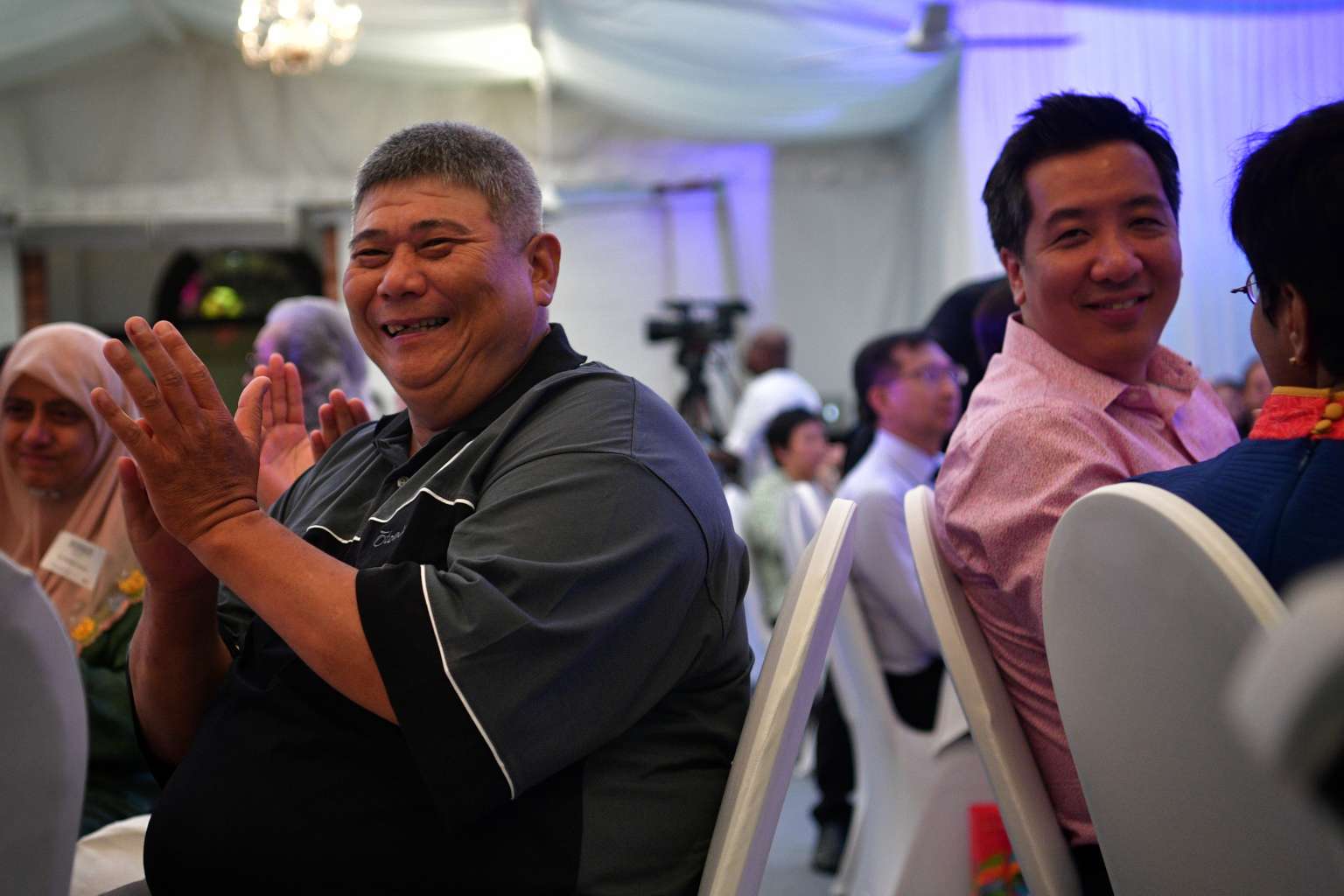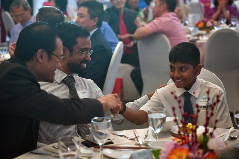 Ashvin Gunasegaran (right) beams as he is congratulated during The Straits Times Singaporean of the Year 2016 award ceremony.
