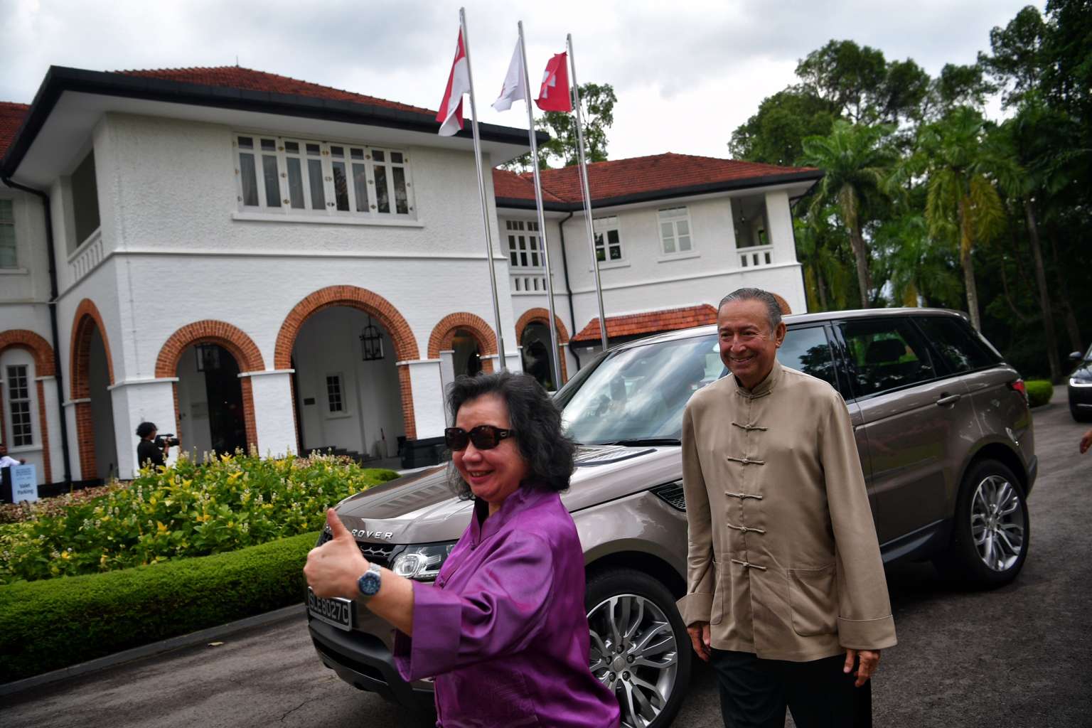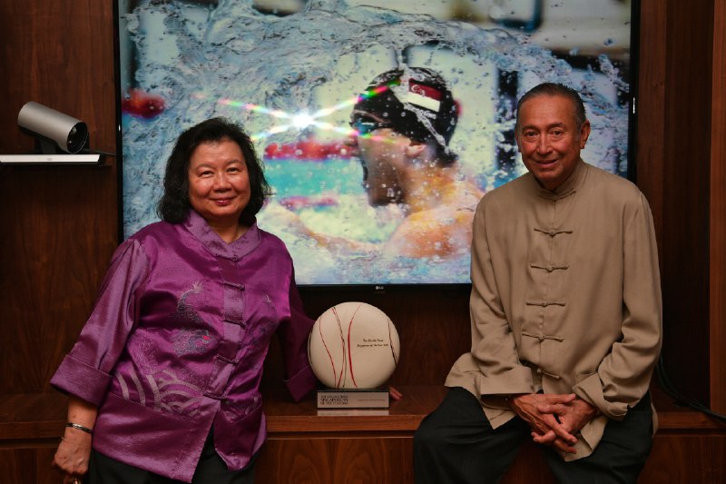 May and Colin Schooling arrive at The Straits Times Singaporean of the Year 2016 award ceremony.