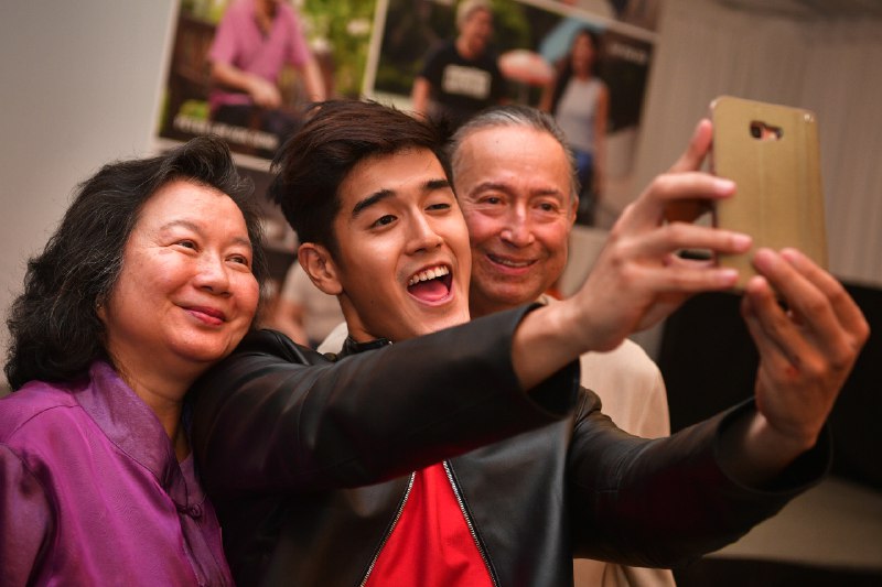 Winners Colin and May Schooling, take a wefie with fellow finalist Nathan Hartono.