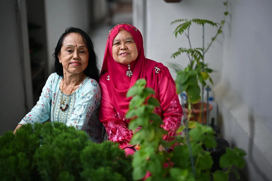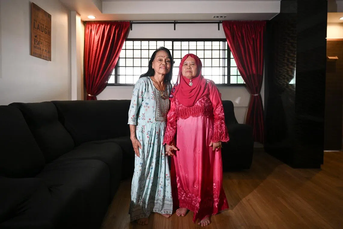 SINGAPORE – For years, they played together as young girls in a village in Aljunied. Neighbours then often asked Madam Thangah Koh, 72, and Madam Fatimah Mohidin, 71, if they were sisters.