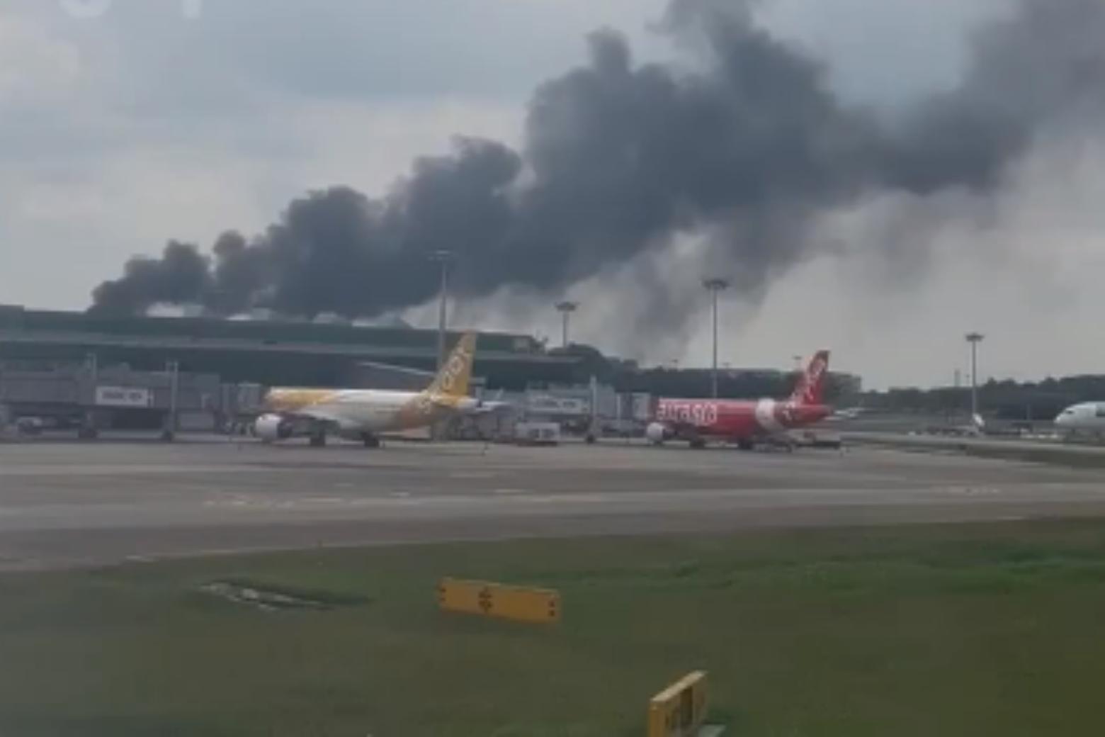 The video showed the thick plumes coming from Changi Airport Terminal 1.